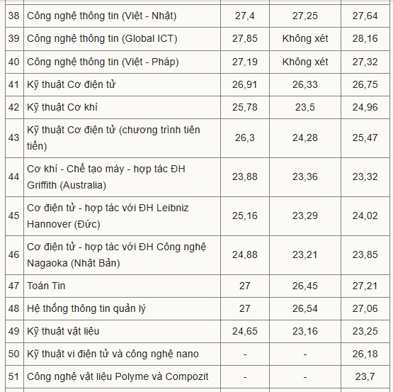 Là trường đại học kỹ thuật trọng điểm quốc gia, Đại học Bách khoa Hà Nội luôn nằm trong nhóm có điểm đầu vào cao nhất, đặc biệt ở các ngành thuộc lĩnh vực Công nghệ thông tin. Trong ba năm gần đây, điểm chuẩn các ngành dao động từ khoảng 21 đến 29,42 điểm (tính theo thang điểm 30).